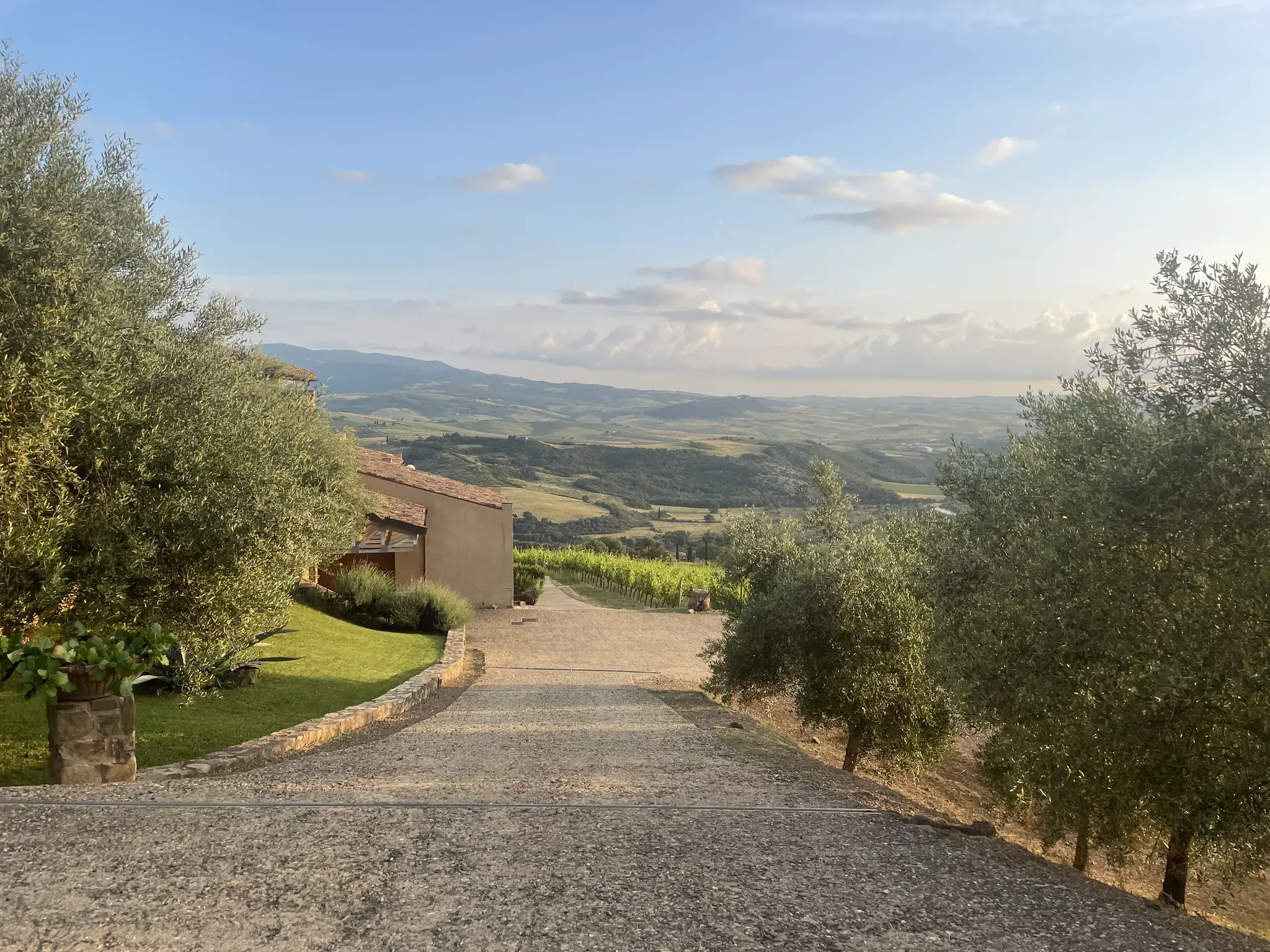 Der Start verlief ruhig. Der Himmel hing noch schwer von den Stürmen der vergangenen Tage, aber bald zeigte sich die Sonne. Dann leuchteten die Hügel in diesem typischen warmen Gelb, das man nur aus der Toskana kennt. Die Landschaft war ein einziges Postkartenmotiv.